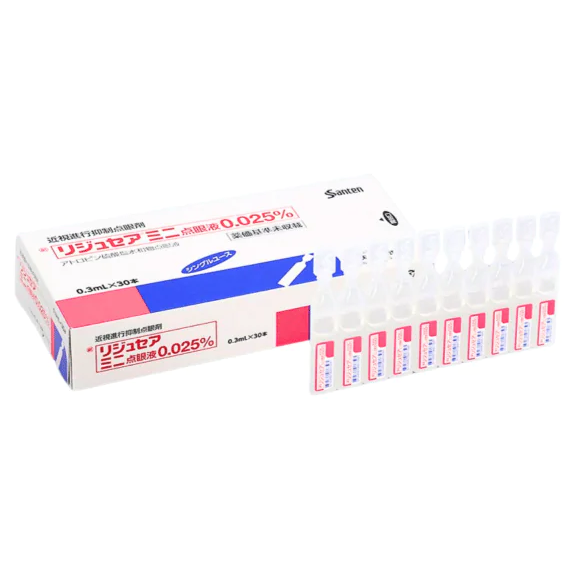 近年アジア諸国において、低濃度アトロピン点眼は近視の進行抑制効果があると報告され、副作用もほぼないことが確認されました。また、アトロピン濃度を濃くすることにより、より近視を抑制する効果が高くなることが報告されています。2025年4月、参天製薬からアトロピン0.025%点眼として「リジュセアミニ点眼液」が発売されました。当院では、これら2種類の低濃度アトロピン点眼液を使用した小児期の近視進行抑制治療を行っています。